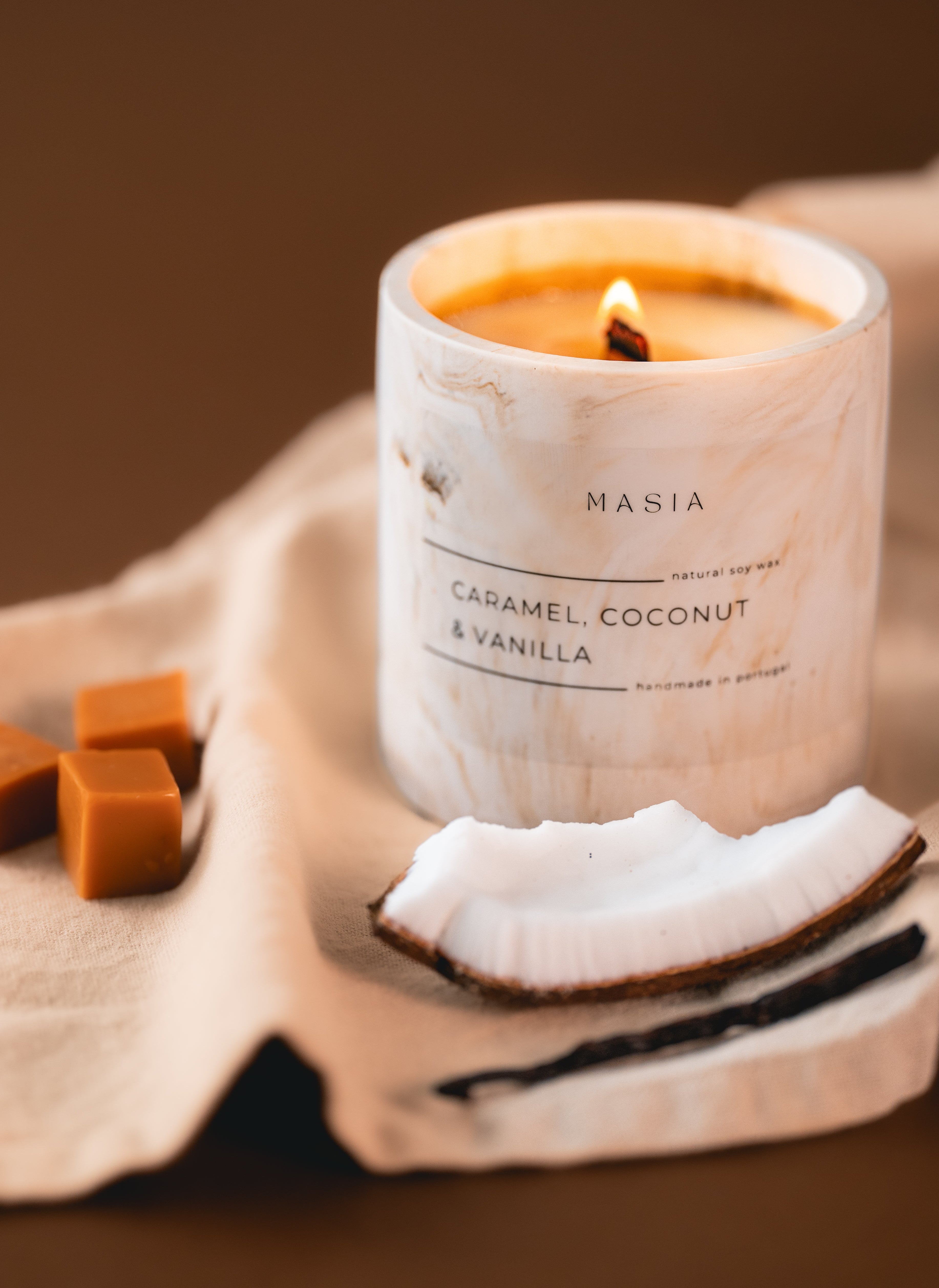 As nossas velas mostram que o luxo e a sustentabilidade coexistem. Feitas à mão em Portugal com cera de soja natural, garantem uma queima limpa. Utilizamos fragrâncias naturais para proporcionar um aroma rico e luxuoso, transformando o teu espaço enquanto respeitamos o meio ambiente e promovemos práticas responsáveis.